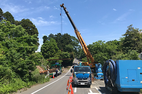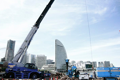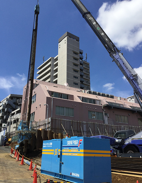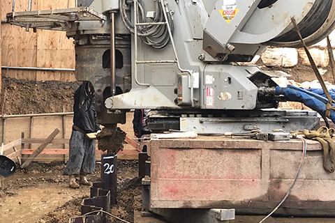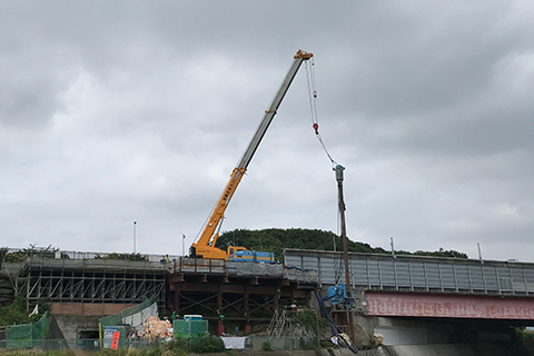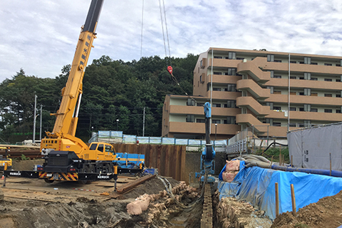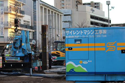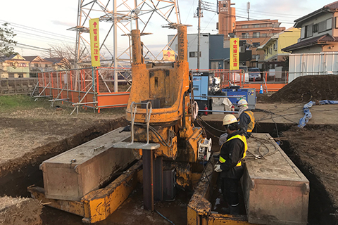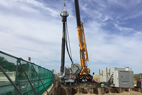 - 長尺鋼矢板を硬質地盤クリア工法にて施工